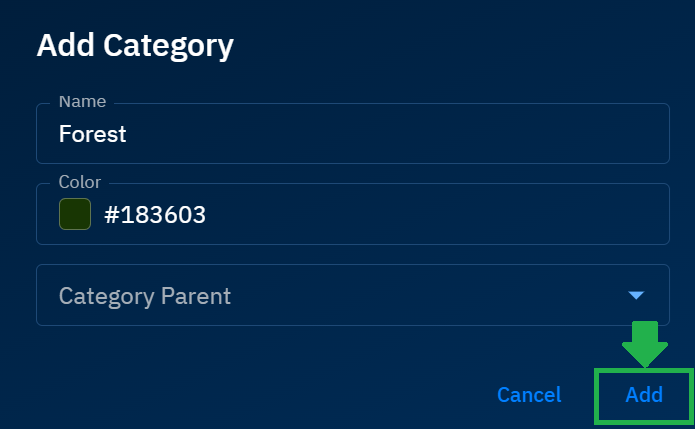 Select a color for the category in the Color field.