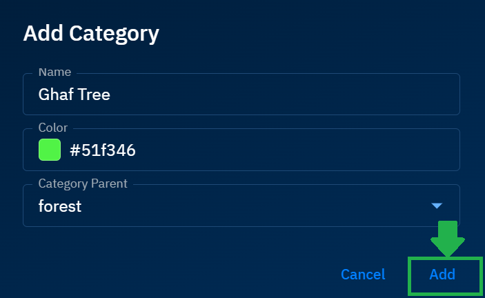 - In the Add Category dialog box, do the following: