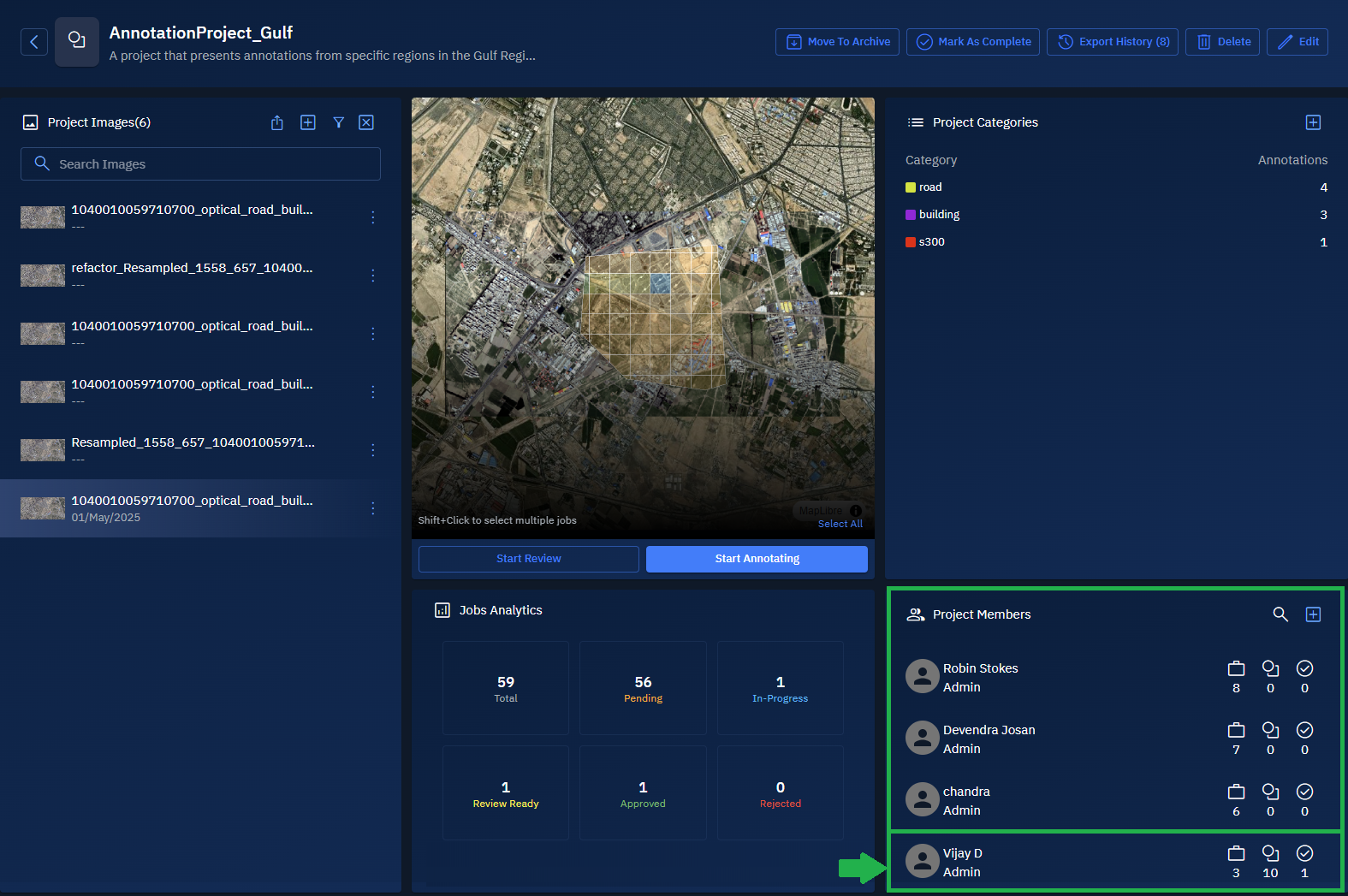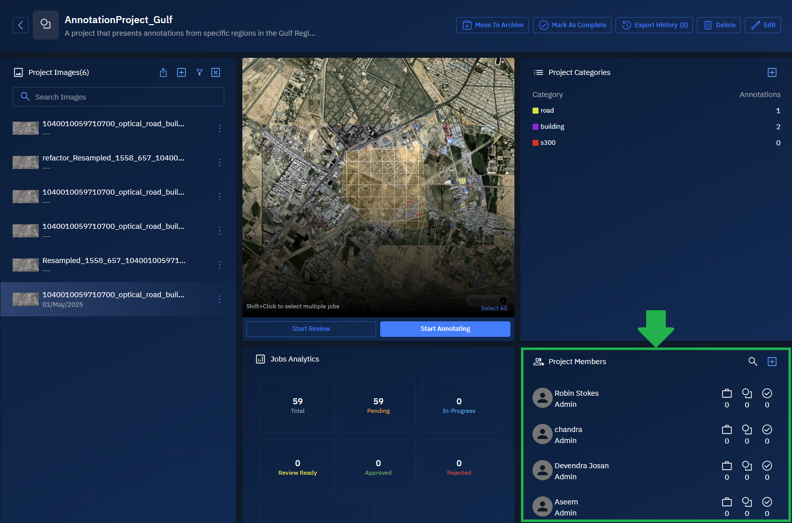 1. In the annotation project page, under the Project Members panel, view the existing members.