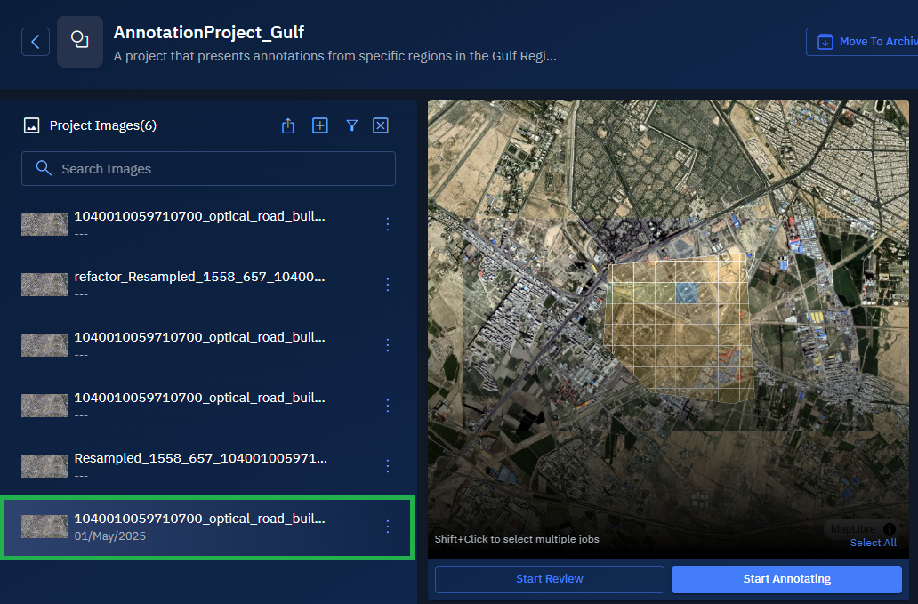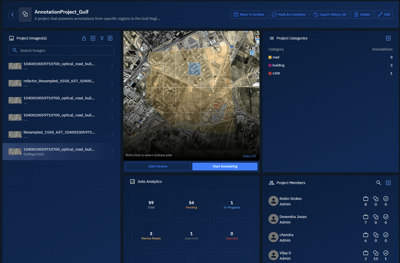 • Click the Pending tile to view the jobs in the Project Image Display panel that are pending or the user has not started yet to annotate.