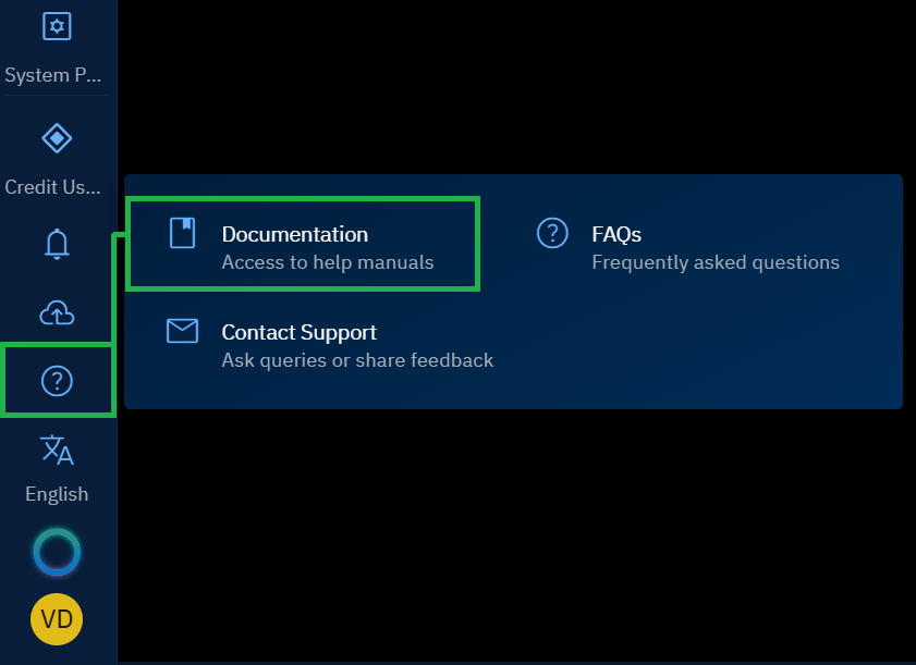 On the left bottom corner, click the Help module and then proceed to click the Documentation module.