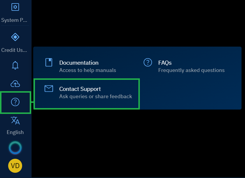 On the left bottom corner, click the Help module and then proceed to click the Contact Support module.