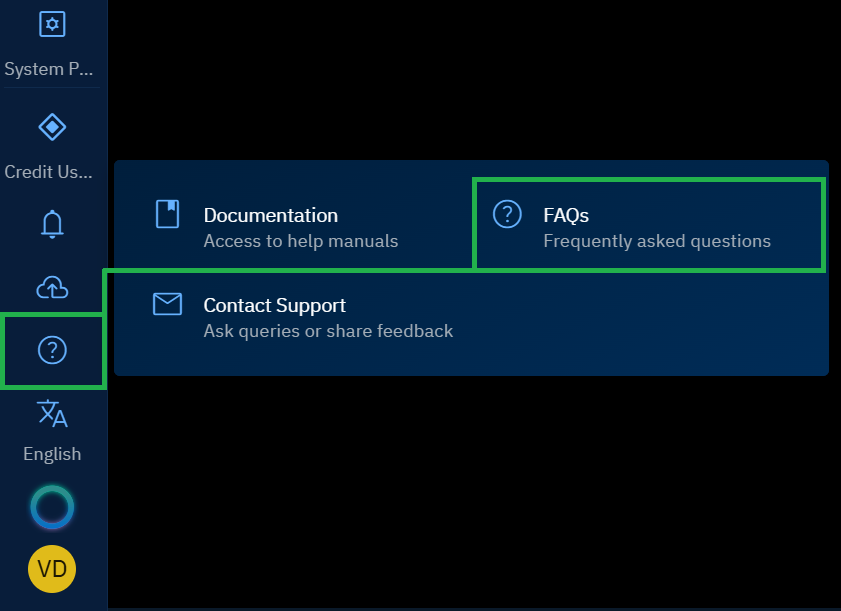 On the left bottom corner, click the Help module and then proceed to click the FAQs module.