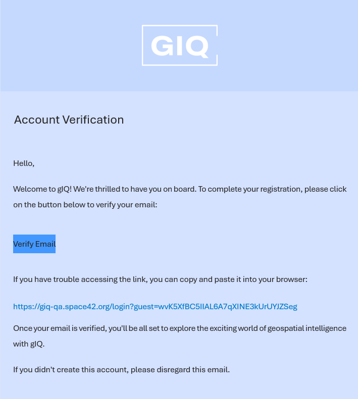 - Click the Verify Email button - a secure link - to confirm your email address.
