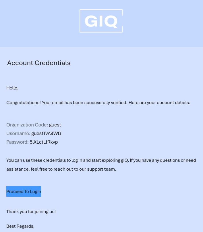 Type or copy paste the guest user crediti Click the Proceed to Login button to login to the gIQ platform.