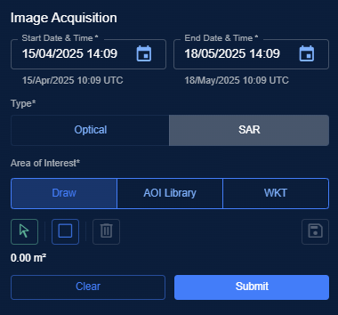 Area of Interest (AOI)Define the Area of Interest (AOI) on the map for image acquisition using the following options: