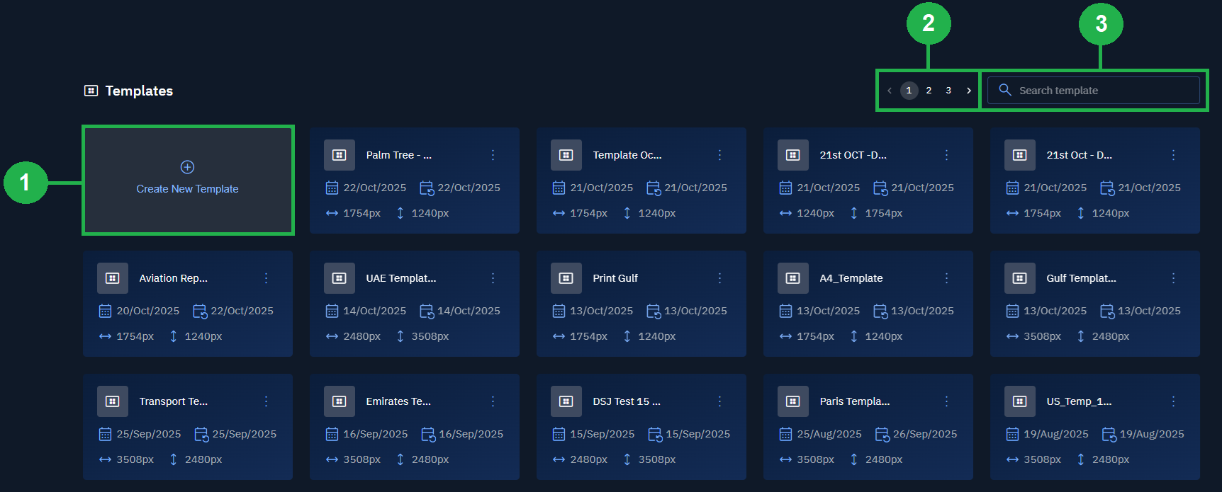 In the Templates Dashboard page, you can do the following: