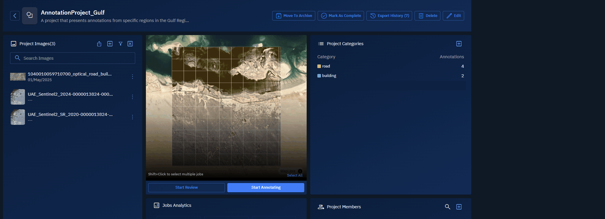 In this section, you learn how to manage project images in an annotation project. You will also learn how to export annotations from individual project images as geojson (.zip file) to your local computer and AMD.