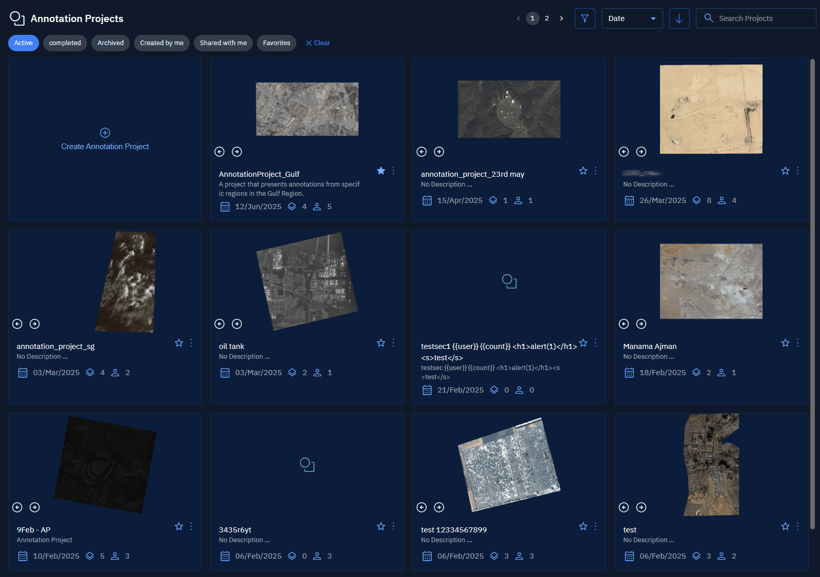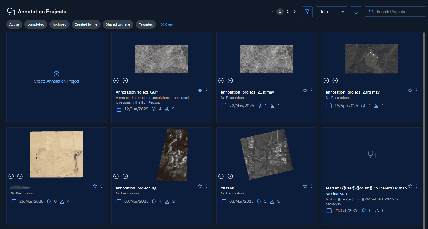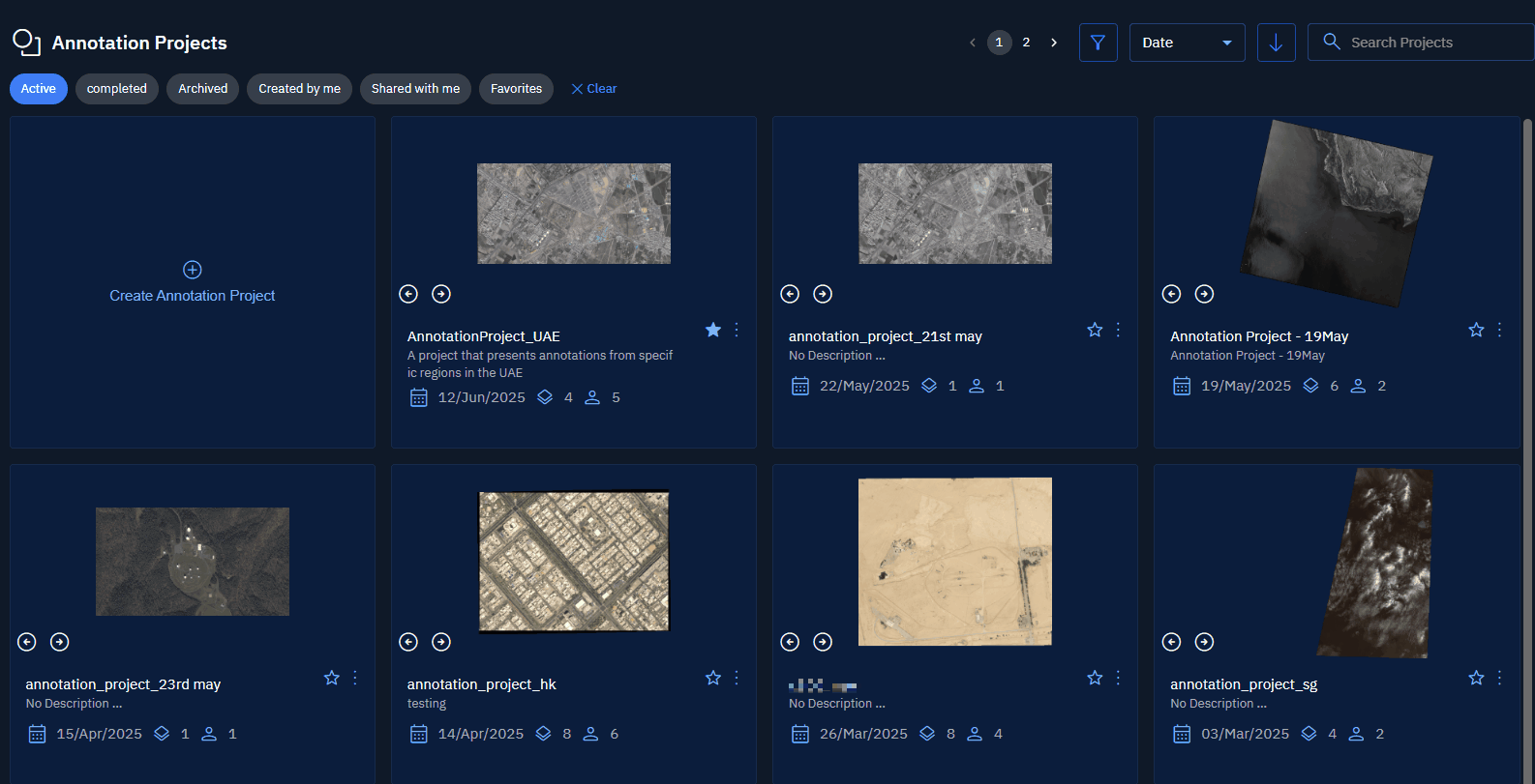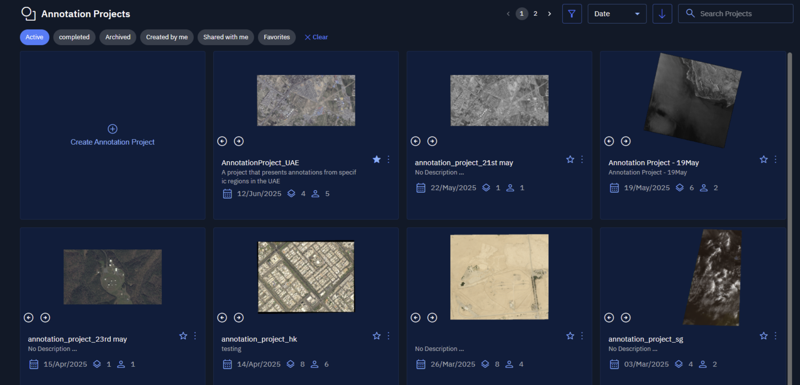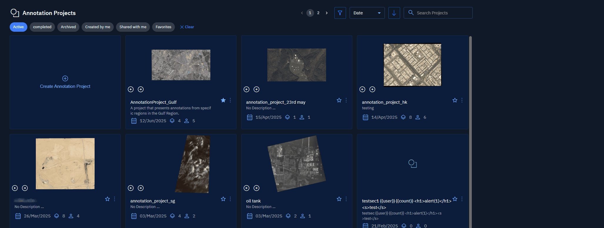 - In the Annotation Projects homepage, view the existing and active annotation projects and click any of the projects to access it.