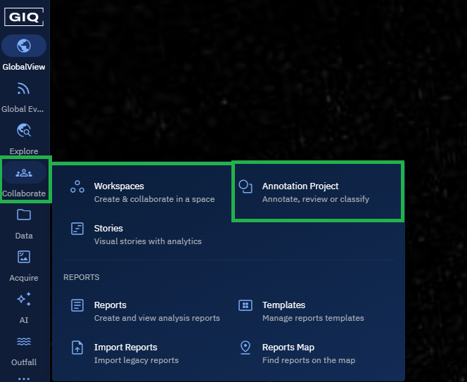 Click the Collaborate module and then proceed to click the Annotation Project sub-module.