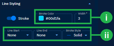 ii. Select an appropriate start and end line terminators from the Line Start and Line End drop-down list. Then proceed to select a stroke style from the Stroke Style drop-down list.