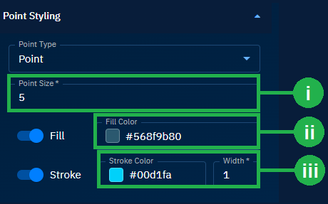 i. Click the Fill Colour field to select a colour of the point or copy-paste a hexadecimal (HEX) color.