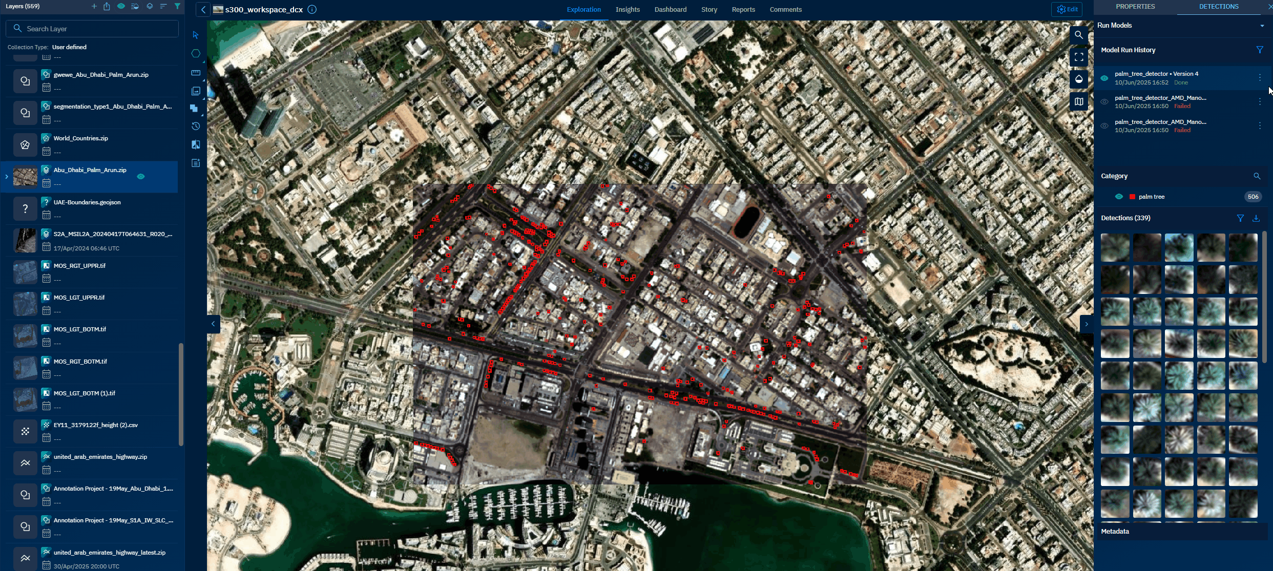 The platform instantly attaches the new annotation layer to the vector layer with all the detections.