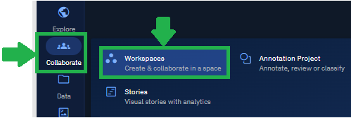 In the right-hand panel, click the Collaborate module, and then click the Workspaces tile.